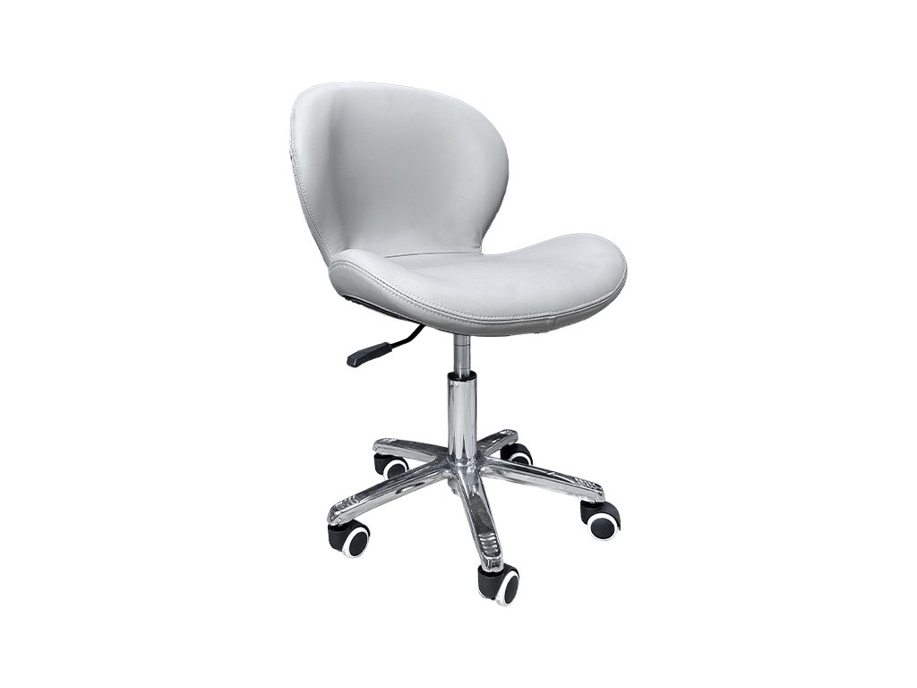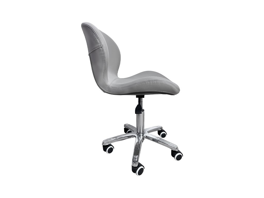 Tato ergonomická pracovní židle v šedém zakřiveném provedení je navržena pro profesionální použití v nehtových a kosmetických salonech, kde je kladen důraz na pohodlí, funkčnost a elegantní vzhled.